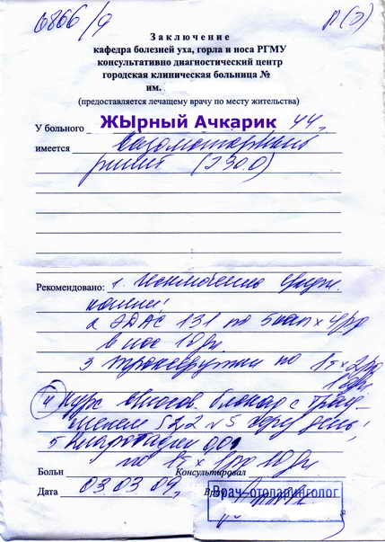 что "говнопатия" вызывает у тебя "лютую, бешеную"(с) ненависть, а фармакохимия рулез... вот тебе в аттаче документ фтему (ессно, фамилие доктора и название лечебного заведения я потёр... но это вполне уважаемая контора, уверяю). Обрати внимание на дату