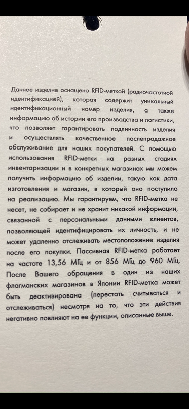 О каком изделии идёт речь на прицепленной бирке? (Там 10 бирок на разных языках)