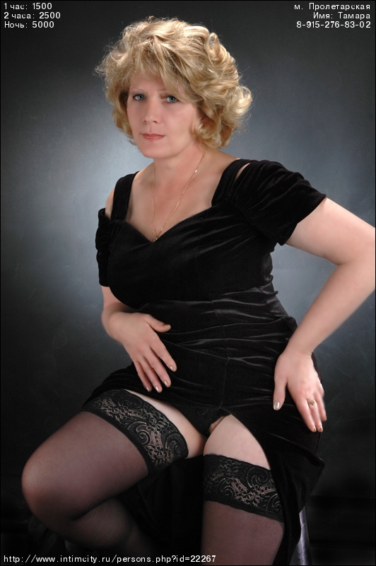 Имя: ТамараТелефон: +7 (915) 276-8302 ТТХ: 46 лет, рост: 165 см, размер груди: 4, вес: 65 кг, волосы: светлые. Цена: 1500 руб за 1 час. Город: Москва. Улица: Талалихина. Метро: Пролетарская. Адм. округ: ЦАО. Отчет: Доброго времени дня,уважаемые доны.В один прекрасный день решил посетить какую-нибудь матюр в возрасте после 40. Выбрал вот эту http://www.intimcity.ru/persons.php?id=38183. Позвонил,получил адрес,хм,знакомые места на Абельмановской,приехал,звоню.Далее такой диалог: "Ой,а я еще не освободилась,может мою подружку поимеете?" "Нет говорю,сколько ждать нужно?" "Минут пять" "О"кей" Примерно через минут 5-7 перезванивает: "Заходите пожалуйста,извините что заставила ждать." Поднимаюсь в известную хату,дверь открывается и меня встречает вот это:http://www.intimcity.ru/persons.php?id=38395 которую я уже трахал именно здесь и говорит,что Саша еще занята и может быть она на что-нибудь сгодиться. Вот это попадалово! На что она годиться я знаю.Разворачиваюсь и съ...бываю. Но т.к ипаться хочется открываю свой тилипон,ищу в районе Пролетарки что-нибудь еще.Нахожу Тамару,созвон,навигация,прибытие.Встречает в накидке,черных чулках и туфлях такого же цвета.На вид постарше заявленных лет,думаю уже за 50,большой живот-очень критично,грудь не имеет никакой упругости.Хата в хорошем состоянии, ванна зачет,КЖ есть.Предлагается тапки,кофе,массаж с маслом,затем мой йенг обрабатывается мирамистином,обрезинивается с помощью рук,делается минет,приглашен КУ,встречен с энтузиазмом, ну и затем переход в ЗКП отстрел.Предлагается кофе,короткий треп, на второй заход времени уже нет да и желания тоже,расчет. Отчет получился какой-то куцый немного,но сегодня на большее я не способен. Резьюм: для любителей грандматюр и бабушков вполне нормальный вариант,ничего негативного сказать не могу.Отношение к клиенту очень доброжелательное,сквозит желание угодить,никаких напрягов не испытал.