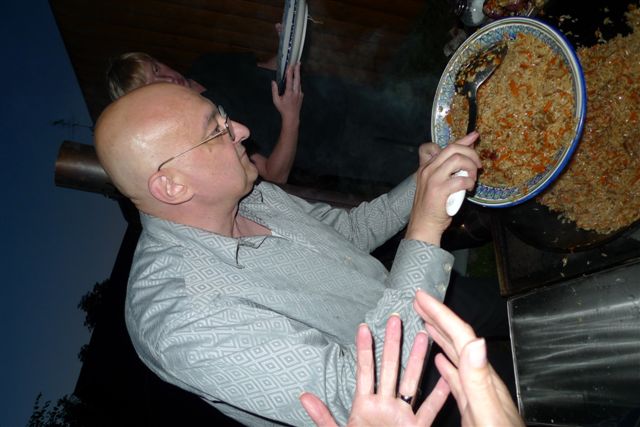 Один мой хороший приятель организовал мастер-класс по приготовлению плова в исполнении известного мастера Сталика Ханкишиева. Рассказывать много не буду - но несколько фоток опубликую. Должен сказать - что плов получился ВЕЛИКОЛЕПНЫЙ. Артистизм и мастерство Сталика - потрясали.