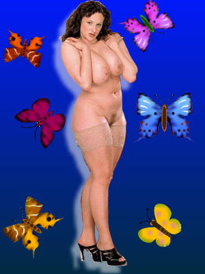 - веселую, душевную и разгоровчивую, но достаточно толстую бабу с внушительным животом, который, однако, не висит сильно и по ляжкам не хлопает, в реале размер 50, не меньше;