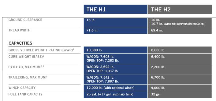 Если я правильно понял значение строчек в ТТХ к Хаммерам