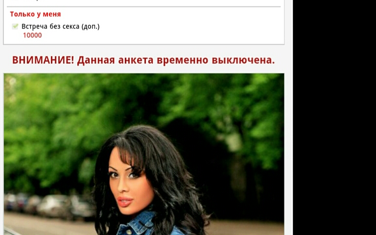 На фото девушка очень симпатичная,приятная,очень складненькая. Телефонный разговор немного по убавил моего энтузиазма. Голос и манера разговора грубовата,говорит с акцентом. Договорились встретиться в Брестоле! Прождал 40-50мин от назначенного время (пробки)-это конечно понятно,но бесит! В конце концов и на метро можно подъехать на работу. При встрече раздражение подугасло ,сходство с фото очень близкое,но разговаривать ей все-таки лучше поменьше. Не блещет умом и поставленной речью)))