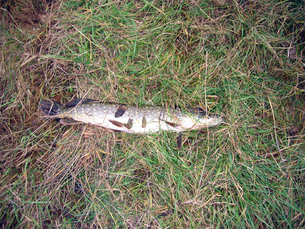 Поездка была поздней (14 ноября 2004). Уже было довольно холодно по этому в это время щука становится малоподвижной и старается забиться либо в траву либо в ямы. Поскольку река довольно мелководная и больших ям не нашли по этому брасали вдоль травяной кромки. Что касается приманки то это уже азы спиннинговой ловли. В это время щука берет только на «резинку». Виброхвост или твистер желательно лимонного, желтого или зеленого цвета и очень небольших размеров. Интересно что рядом стояло человек 6 пацанов которые в течении 4 часов не сходя с одного места бросали блесну крупный шторлинг. Я на Волги то им не всегда пользуюсь, а тут по мелководью(средняя глубина 1.5-2 метра) протащить нереально. С учетом того что щука была малоподвижная они так ничего и не поймали. Я попытался им посоветовать но они сказали что сами умные и слушать меня не стали.  И еще что меня поразило это то что в реке отсутствует окунь. Это очень удивительно. И еще один маленький совет конечно там можно ловить с берега,(приятель как раз поймал с берега) но лучше если будет небольшая резиновая лодка. Тогда точно без рыбы не уйдете. Я считаю что поймать в 40 км от Москвы щуку почти в 2 килограмма это совсем не плохо. Успехов.