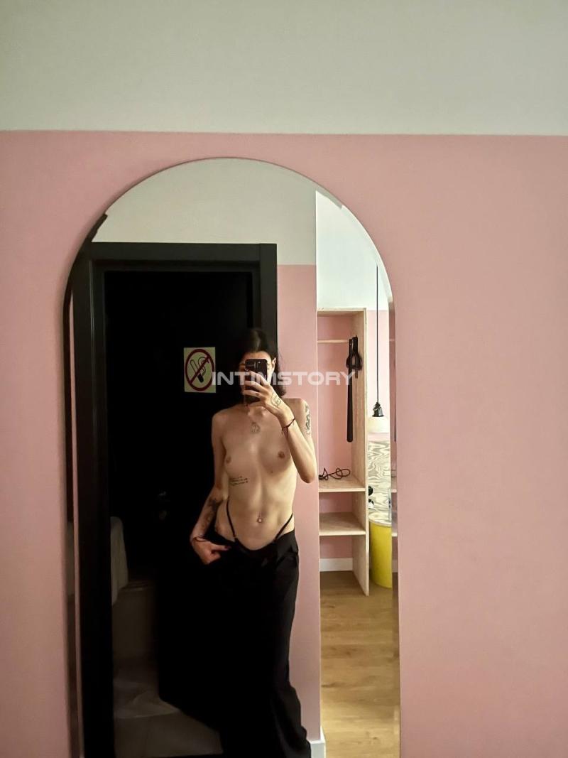 ТТХ. Фото селфи без ретуши, в анкете есть видео. Лицо симпатичное, в жизни выглядит на 18 лет (ИМХО), глаза светло-карии. Высокая, рост 179 при весе 48 кг (с её слов),- за счёт тонкой кости. Грудь единичка,- девичья, стоячая, с торчащими сосками. Талия тонкая, - осиная; животик плоский как струна; аккуратная попа,- с узкими бедрами, но выраженная сзади. Ноги очень длинные, тонкие и стройные. Самая настоящая моделька! Сказала, что в агентстве "Love.." работает второй день. Ранее успела немного поработать в другом агентстве: