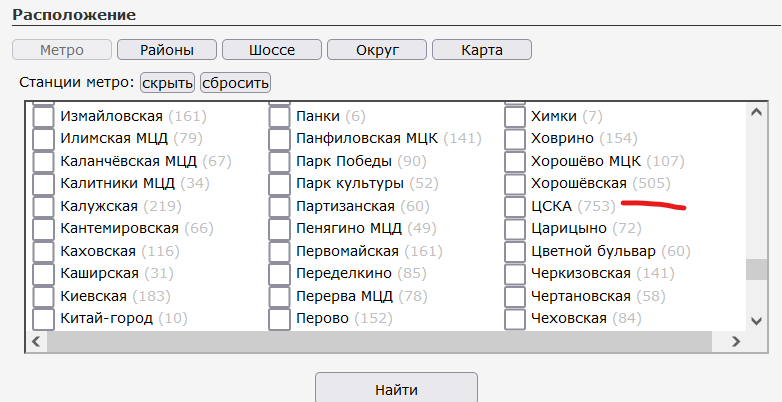 Вот зашел, открыл метро ЦСКА 227 анкет, а было гораздо больше.