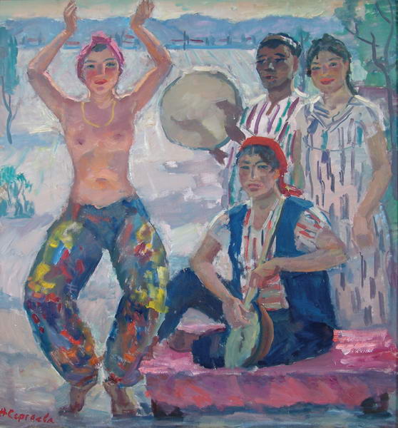 действующие лица: Фаина - на картине танцует Ахмат - любовник Фаины с бубном Хуетобула - муж Фаины, работает гастробайтером в Москве, на картине отсутствует Дилора, Гузаль-подруги Фаины, изображены на картине