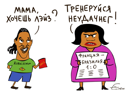 А дальше без Аргентины, Англии и Бразилии, и в какой-то степени без Украины... И если вылет Украины был закономерен, да и Аргентина попала под хозяев, у Англии игры не было весь турнир, то Французы опять что-то напутали и выбили Бразилию, не буду ничего говорить о том, что теперь уж точно никто не помешает хозяевам, но... Осталось три интересных матча и Финал (Германия - Португалия - я так думаю).