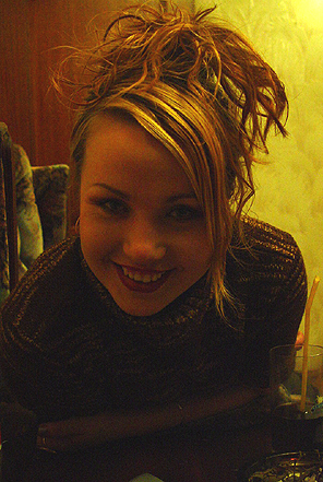 Были задарены наутро цветы и 1500 рублесов, ну типа за ночь, типа у нас в Маскве так принято, на канфеты. Была приятно удивлена. Прияяяяятно. Запудрил деффке голову, блин, кажись окончательно, рассказала о себе всё, тянула на чаепитие к себе домой, там родители и всётакое. Не пошёл, сказал, штоб не гнала лошадей, сослался на дела, подонок, нах..... Саршенно случайно у неё в сумочке оказалось несколько фоток её и её подружек, одна была задарена мне (отсканирую, пришпилю к отчиоту) с написанием всевозможных телефонов, по которым её мона найти. Мобильника у ней нет. Жаль.