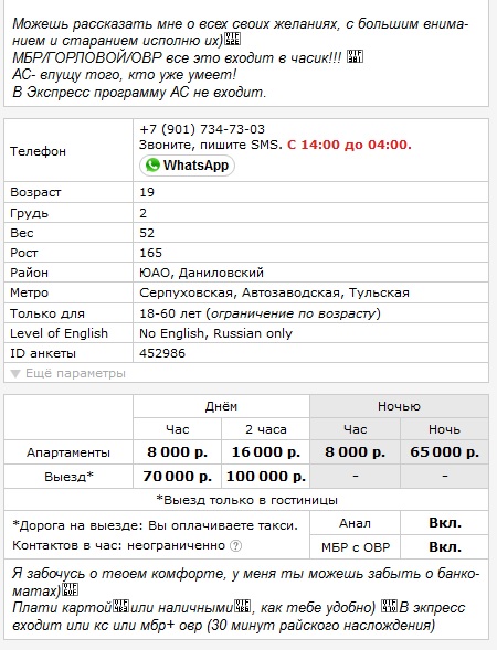Минет без резины: есть. Анальный секс: есть.