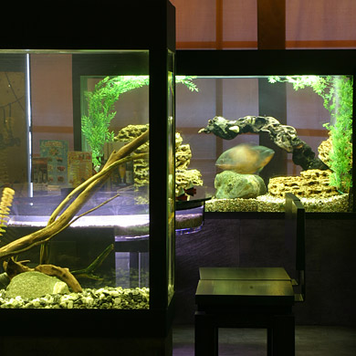 Заходим в универсам мимо лотка с журналами, за затемненной дверью полутемный же зал с диванчиками, перегородками, бесшумными официантками и рыбами в аквариумах. Еда замечательная и очень качественная. Очень понравились разнообразные безалкогольные коктейли типа "Апельсиновый закат", "Бостонский крем" и т.п. Суши и ролы хвалят все. Замечательный свежеприготовленный рис. В больших аквариумах неспешно плавают рыбы, явно уверенные в том, что не станут ингридиентом для приготовления сашими и прочих роллов. Есть татами-зал человек на 10, а также замечательная летняя площадка столов на 10 с прудиком внутри. Официантки вышколены в плане улавливания взглядов и пожеланий клиентов. Из десертов примечательна «Черная мамба» (310 р.), представляющий собой роллы из сладкого риса с ягодами, посыпанные шоколадной крошкой и политые ягодным же муссом. Цены по среднемосковским меркам нормальные, выше "Якитории" и т.п., но ниже "Такэ". Хотя, при таком месторасположении (мягко говоря, вдали от центра), могли бы быть и пониже. Ну, вот вроде и все. Из минусов отмечу неудобный и странный график работы - с 11.00 до 24.00! Сайта нет. Есть доставка с 11 до 23 часов. Также есть филиал где-то в Жулебино.