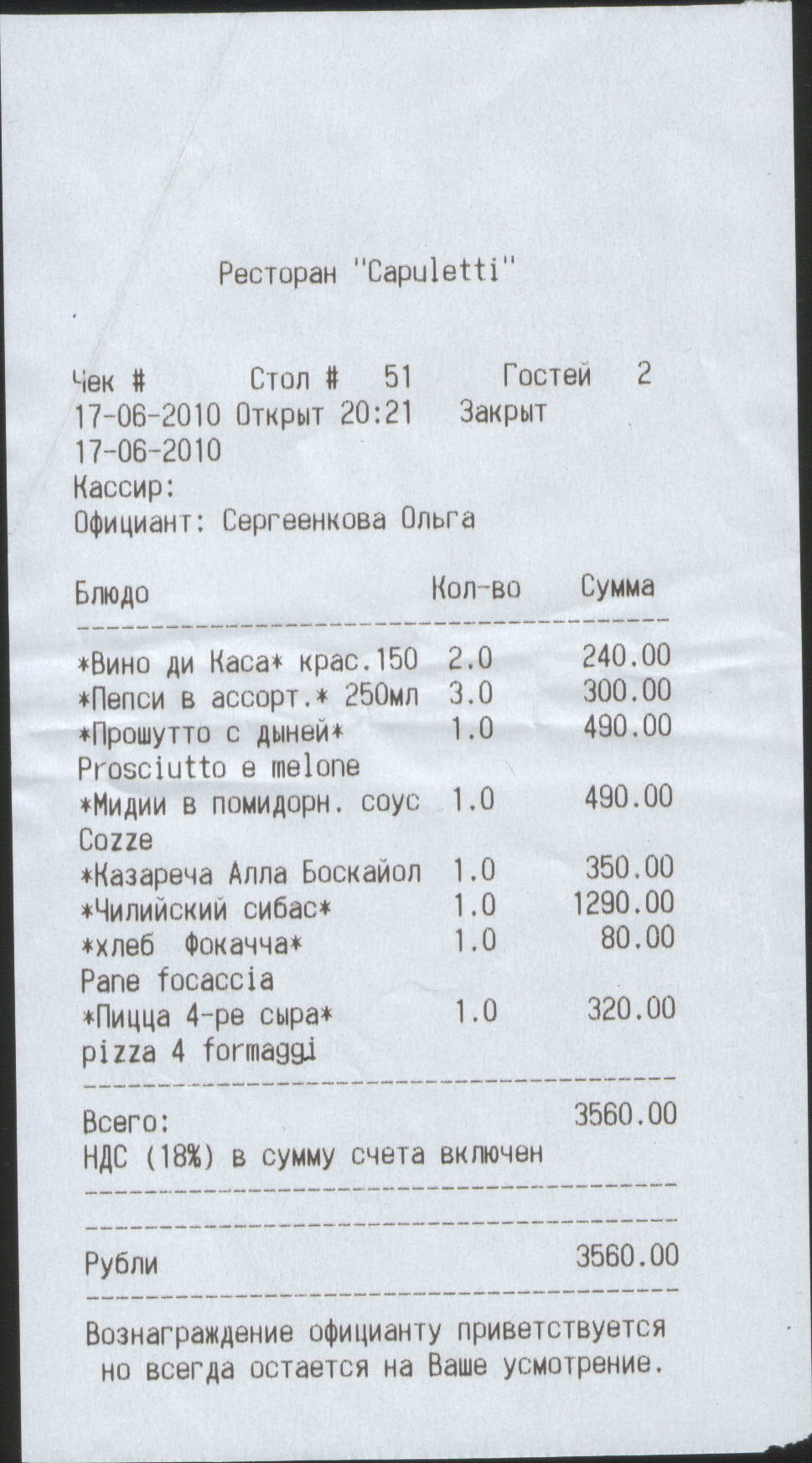 Выбрались вчера с супругой в итальянский ресторанчик. Принадлежит РГ "Гинза Проджект", позиционируют себя как траттория и патиссерия. Адрес Большой пр. П.С. 74. Это ближе к Петроградке. Рядом, за углом, есть чебуречная, куда мы с Гариком, в свое время, чуть было не завернули. Открылся он недавно, кажется в январе. С парковкой полная Ж. Не, ну можно конечно, как многие быдл.... не культурные люди паркануться на тротуаре или полосе движения для общественного транспорта, но лучше на одной из соседних улочек, и пройтись чутка. Интеренсо, что при созвоне, администратор клятвенно заверяет о наличии "свой парковки". При уточнении, а где это там у них она есть, уклончиво отвечает, что припаркуют полюбому, в крайнем случае прямо на Большом, а парковщик, он же мальчик на дверях, предупредит, если машину будут эвакуировать. Вот спасибо. Ну да ладно. Сам ресторан занимает два этажа. Первый этаж - два зала для некурящих. Один побольше, второй, ближе к входу, поменьше плюс прямо там расположена кондитерская с витринами, что, в принципе, не напрягает. Интерьер стилизован под старину, ф смысле этакий ресторанчик аля 30-40 годыв итальянской глубинке, а так думаю. Довольно симпатично. Официанты мальчишки и дифчонки вежливы, улыбчивы и симпатишны. Конечно я оценивал женскую часть персонала, супруга - мужскую.  На входе девочка администратор ничего так, сисьге 3-ка как минимум.  С местами легкий напряг, посему лучше заказывать заранее, хоть за час, иначе есть возможность полчасика подождать. Музыка фоном, но очень ненавязчиво. Два сортира, прикольное оформление. Есть телик с футбольными трансляциями, но, во первых нет того антуража, какой должен присутствовать для просмотра, второе - нет пива разливного. В бутылках только итальянское , крушовице темное и еще какое-то. Не густо.  Кухня. Естественно пицца и основное меню. Пиццу брали 4 вида сыра, зачОт. Но, необычно, что туда явно положили какой-то копченый сыр, хотя это не испортило вкус. Пармская с дыней очень вкусная, лучше в Питере, лично я, пока, не пробовал. Мидии в томатном соусе. Отлично, даже супруга, хоть их и не любит, слопала пол порции. Тарелка большая, но сами мидии, сцукО, очень маленькие.  Паста с грибами и копчеными свиными щечками так же произвела благоприятное впечатление. Опробовал еще сибаса, вот, сцуко официантка конечно развела как кролика. Я, как настоящий нисчейоп, заказал простой стейк, она же принесла, как потом оказалось чилийского, припущенного на березоВых углях. Разница рублей в 700. Скандалить не стал, ибо был в очень хорошем настроении, но, взял её на заметку. Сибас был вкусный, но сцуко очень жирный........и дорогой.  Карта вин довольно таки обширна. Можно бокалами, полбутылками и целыми емкостями. Цена от 120 рублей за 150 мл. Пепси нифига не бюджет, маленькая бутылка - 100 рупий. В следующий раз принесу с собой 2л.  Обслуживание неплохое. Жене перепутали вид пиццы, ну бывает, заменили без вопросов в течении 7-8 минут. Все с улыбкой, быстро, вежливо. Официанты блюда знают, могут все рассказать и пояснить, что, к сожалению, у нас встречается не очень часто, вне зависимости от уровня заведения.