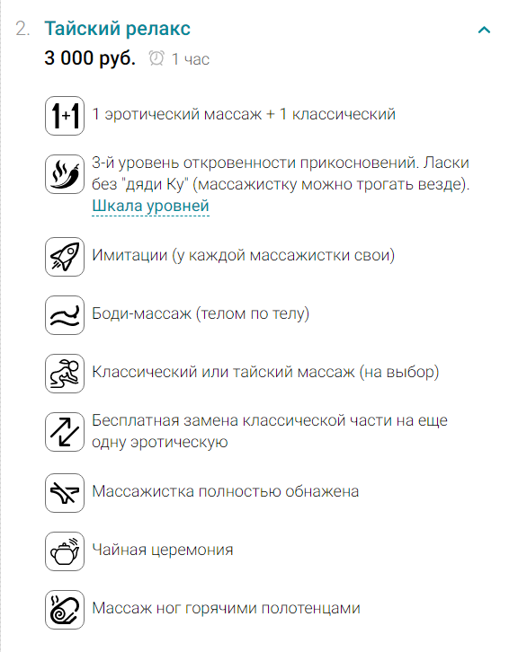 В Релаксе есть более дорогие программы, но если брать стандартный час с ласками за 3000 то в Релаксе такая программа даже выглядит более насыщенной чем в других салонах сети