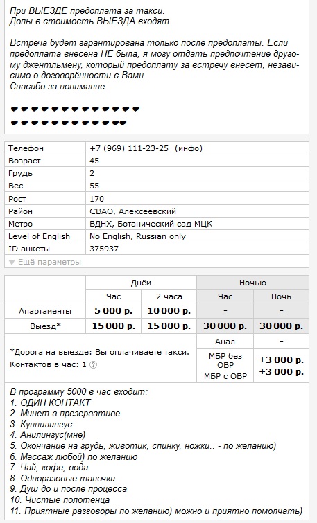 Какие нах ещё счёты?? Кидок клиента на 22000 руб и некачественное оказание услуг. Но это не главное, главное последующий пистёж и результат. А все ваши фото хорошо бьются через яндекс, 100 лет в профессии, а всё думают инкогнито остаться... Там по авто уже трахаться пошла, не говоря про выезда. И никаких семей нет, появляются только когда отчет пишется. Передай Анжелике, чтоб поменьше пистила у себя под анкетой, а то привыкли только к отличным оценкам/отзывам. Смотрю удалила всю муйню. А её отношение к клиентам она сама описала в заголовке (про предоплату и это не такси, полную предоплату). Валентина, это ты её научила? И дальше по тексту: наибольшая выгода при наименьших усилиях (п.1 сейчас ещё и ОДИН КОНТАКТ стал, и п.11 особенно.. про "помолчать". Уже не смешно) Бедная овечка.