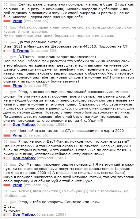 Трамп. Я человек принципиальный и никогда не перед кем не заискивал. Майбах со мной раздружил, очень обиделся, что я его не предупредил про большую родинку у феи на груди...а я и не знал, что у него на это бзики! Но с его вспыльчивым характером поссориться с другом из-за феи,- это наверное в порядке вещей, а я таких людей не люблю.. Ранее я ему писал в личку, что если он будет устраивать чаты в платных анкетах фей, с разборками и некчемными сообщениями, то это ни к чему хорошему его не приведёт, он вроде соглашался, но вижу, что никаких выводов не сделал..не удивительно, что некоторые феи ему отказывают во встрече.