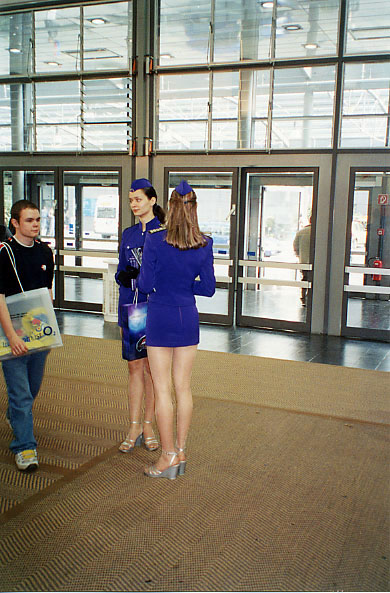 И вдруг, о чудо! Уж не сплю ли я? Два прелестных создания возникают на горизонте рекламируя какой-то иностранную х..йню.(смотри фото) Ноги сами несут меня к ним. По ходу вспоминаю английские слова из курса средней школы. Подгребаю. На лице улыбка до ушей. «Хай! Ду ю спик инглишь?». Это я демонстрирую глубокие познания в английском языке. И вдруг: