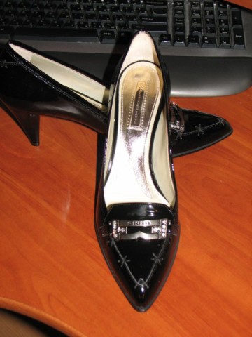 А самые любимые туфли на чисто символическом каблуке (и то под брюки). По работе я конечно надену любой каблук, но блин... Это ж за деньги и ради денег! А за бесплатно буду избегать каблука всеми силами... Может мне в голову стукнет за автобусом пробежаться, или через забор перелезть... А на каблуке надо "лицо держать" И вообще, чего ради по улице на них ходить или в машине обратную сторону педали царапать?