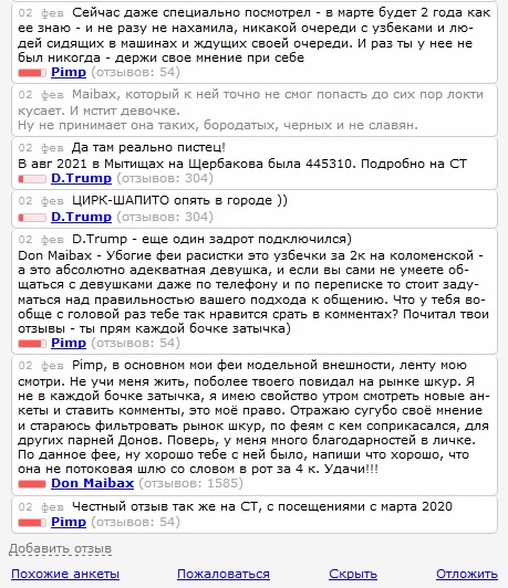 Пимп, те повезло что модераторши интимсити (ты случаем не из их "команды"??) отзывы удаляют, ладно меня обнулённого, но и Майбаха со 100% рейтингом. Беспредел полный, оставляют только всяких задротов (сам признался по тексту)