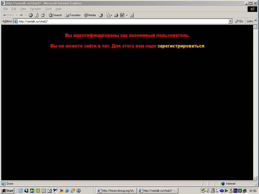 а тогда как же я все время попадаю в чат ? я хожу только через досуг. Ты дал прямую ссылку, но sextalk меня "не узнал" , пришлось логиниться по второму разу... я ,наверное, чего-то не понимаю...