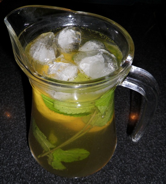 Домашний лимонад готовится легко и просто. На 1,5 литра воды берутся 1 лимон (крупный или средний), десяток-другой листиков мяты, 30-50 граммов сахара. Лимон разрезается на 2 половинки поперек, сок лимона ожимается в емкость (графин), туда же помещаюся отжатые половинки цедровой оболочки, листья мяты слегка давятся (скалкой, ступкой) до появления запаха и тоже помещаются в графин, и заливаются холодной водой. Сахар растворяется в небольшом количестве кипятка, сироп остужается холодной водой и заливается в емкость с лимоном и мятой. Настаивается полчаса. Подается с кусочками льда, добавляемыми в графин. Лед можно подкрасить в зеленый цвет соком мяты. Для этого мята помещается в блендер, сок процеживается через сито и добавляется в воду, используемую для приготовления льда.