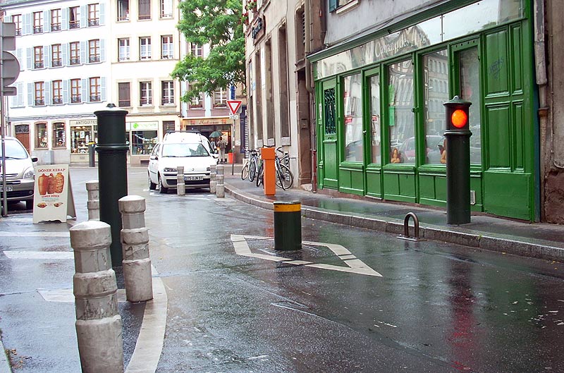 а вот в Немеччине есть такие блоки во дворах, которые ложатся на землю с помощью нажатия клавиши на пульте. У экстренных служб такие пульты есть, а у хитросделанных, типа меня, которые пробки по дворам объезжают - нет.