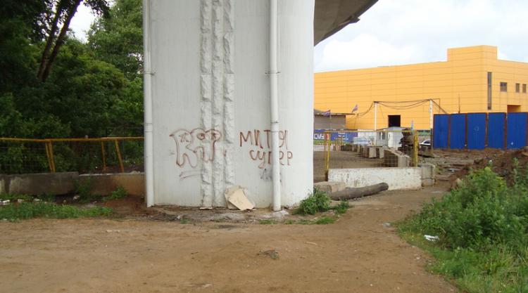 Теперь за ним расположена парковка возле въезда на полуживой долгострой – стройплощадку «Торгового центра «Гудзон». Но русского человека не остановить – параллельно прежней была накатана новая дорога…
