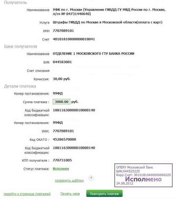Позже оплачивал штраф Начальнице (там точно было постановление 99-й серии) - насколько помню, тоже через банкомат Сбера (и тоже матерясь, т.к. уже забыл, где там искать )))))))).