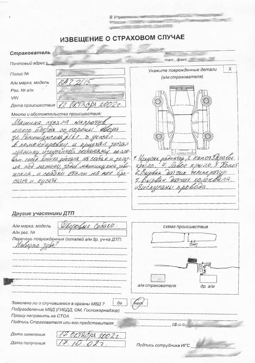 Извещение о страховом случае.