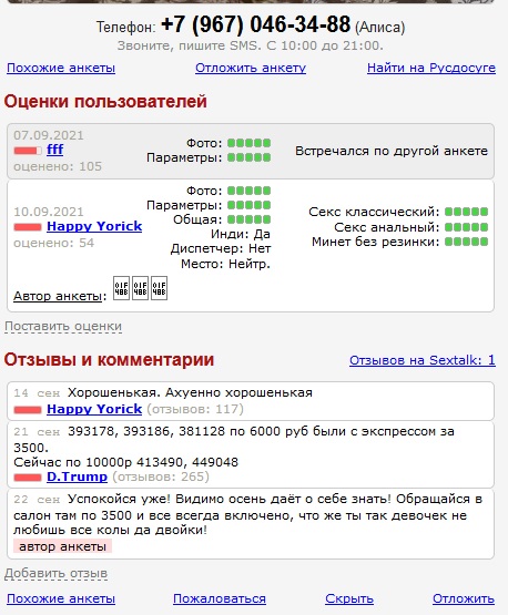Отчет про Нику-Настю, у которой был в дек 2020 на Космонавтов (ВДНХ) Понравилось фото, ТТХ, решил позвонить по одной из реклам, их у неё несколько и все с закрытыми комментами когда вкл.. Экспресс=3500 указан. Трубку не взяла, но сразу перезвонила, спросил на счет экспресса -сказала 4000... "А в рекламе 3500" - хорошо, сделаю за 3500. "А если всё зашибись у нас пойдёт, то можно на полный час остаться?" -можно. Ехал я, шел и тут телефон на морозе вырубается, засунул подмышку отогревать, опоздал минут на 10, хотя прям вот точное время до минуты не обговаривали. У подъезда звоню с 7% заряда -не отвечает. Опять перезванивает, "Вы опаздываете?" -да здесь я уже, открывайте быстрее, ща связь вырубится. Зашел.