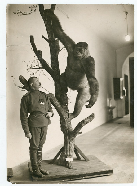 Прилагаю фото Филиппа Евтихиевича Федулова (1916) у чучела гориллы. Его он (по воспоминаниям современников) завершил благодаря неистощимой энергии и энтузиазму, граничившему порой с маниакальностью. Этим и отличается творческая работа от примитивной штамповки.