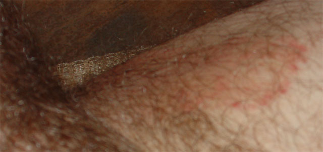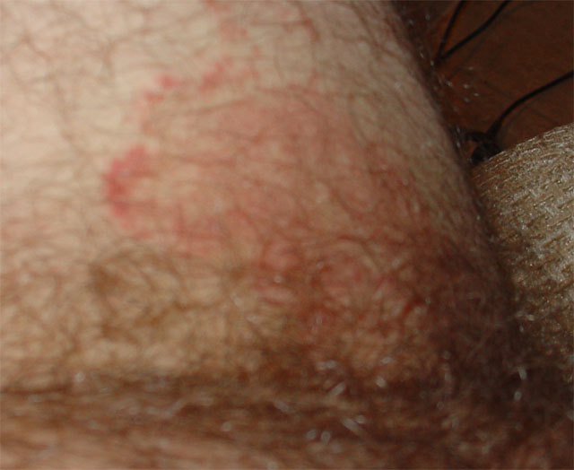 Приветствую членов КЛС и обращаюсь за советом. Вот уже месяца как 3-4 в паху на внутренней стороне с обеих сторон появилось раздражение. Думал, что может быть связано с ЗППП, но через пару недель после последнего секса сдал анализы, все чисто. Показался врачу - тот успокоил, типа фигня, назначил "Тридерм". По инструкции обрабатывал раздраженную поверхность - цвет раздражения постепенно бледнел, но оно все равно не проходило. Если прекращать обрабатывать, то опять начиналось покраснение. Выделений никаких, гнойников никаких. Но фиг знает - напрягает меня, что время прошло, лекарство было применено - а хрень эта не проходит. Возникают мысли что обшибится мог врач. Отсюда вопрос - кто может по фоткам определить на что это похоже и чем лечить - ВЭЛКАМ!! Очень жду ваших комментов. Заранее благодарен.