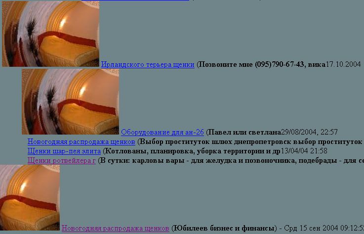 В этом объявлении опять щенки и есть имейл esya1978@mail.ru По имелу находится объява про ремонт тачки от какого-то Максима. Сутер? Макс, ты атчот наваял? :-) Также находим другие фотки на http://www.sosulka.ru/meet/view.php?id=2896 Не очень похоже, но может быть она же. Также всплывает еще один телефон и еще одна фея, но в целом по всем мнение отстойное (http://sextalk.ru/phsearch.php?phone=9168120828).
