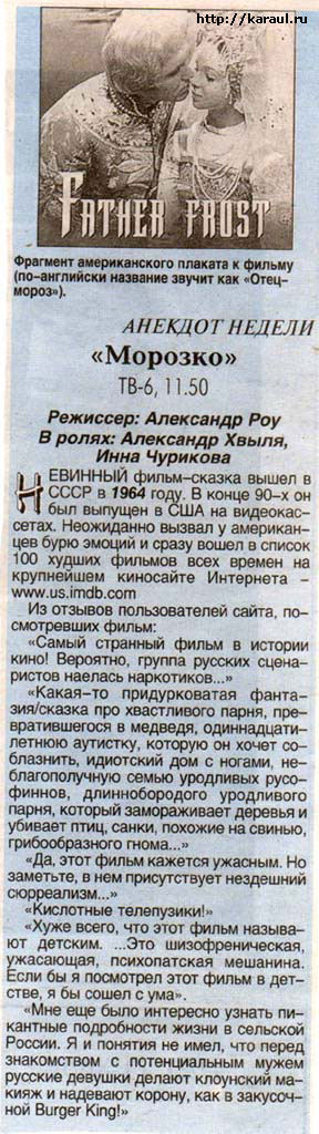 отзывы американских газет на сказку "морозко" +