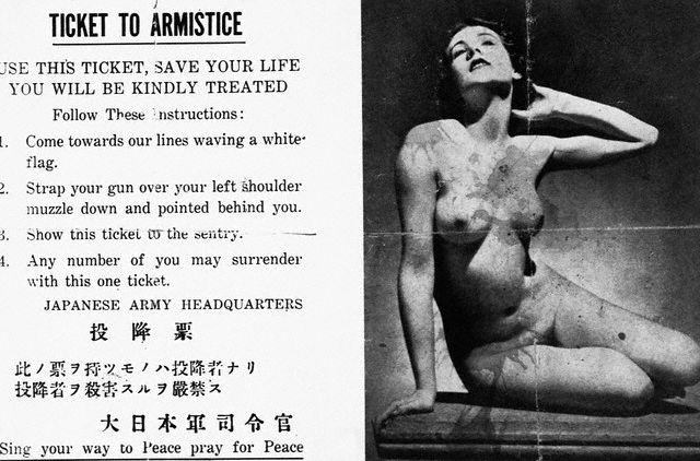 и еще эту маленькую листовочку, разбрасываемую японцами на островах и призывающую сдаться