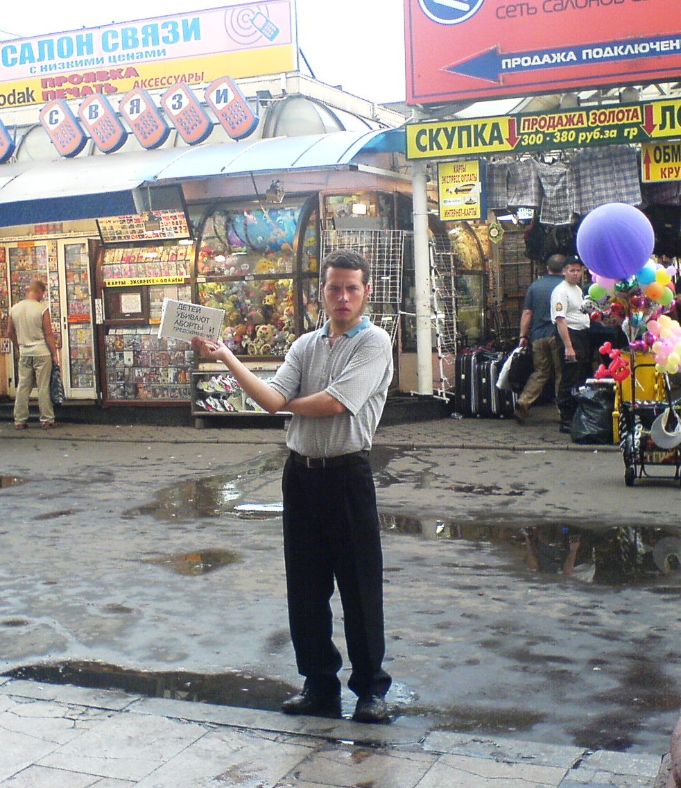 стоит на выходе из м.Комсомольская и вопит прям в ухо прохожим: "Детей убивают аборты!"