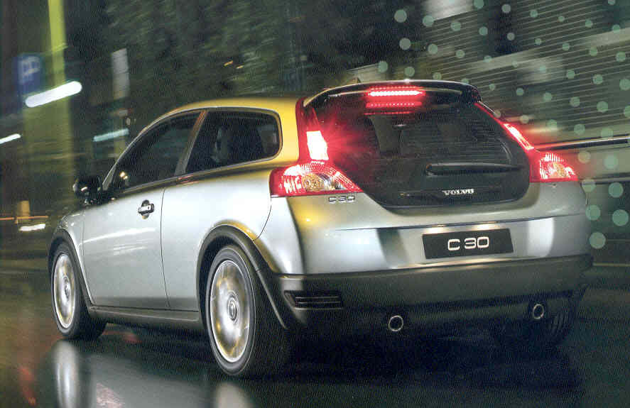 Вот хочу представить новую машину. Вообще Volvo молодцы.Практически на каждом автошоу показывают новинки...В прошлом году была С70 кабриолет...Кстати,я поинтересовался,будет ли AWD версия...Нет,к сожалению.Только передний привод. Вот новая С30. Про всякие колонки и музыку - не буду. Возможно исполнение Т5 - 6и скоростная ручная коробка. Т5 Турбо - даёт 218 лошадок Обычный вариант - 2.4 л. со 168 лошадками Передний привод.Цена 28000/32000$
