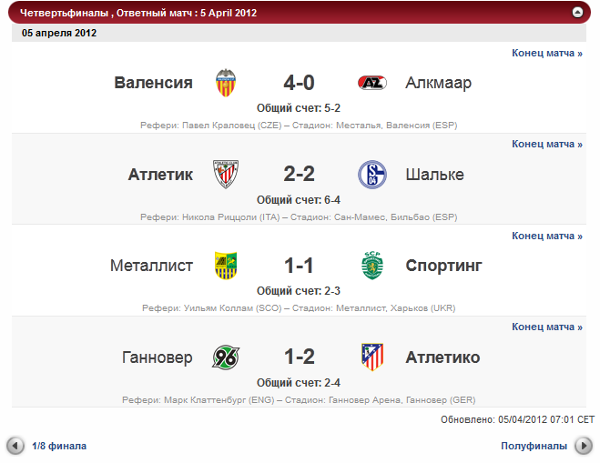 Лига Европы 2012 - Четвертьфиналы