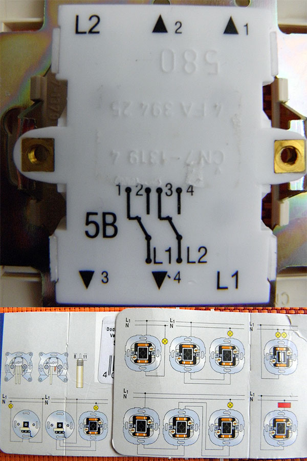 но схемы я читать не умею, вот оборотная сторона выключателя и схемы, которые были на упаковке.