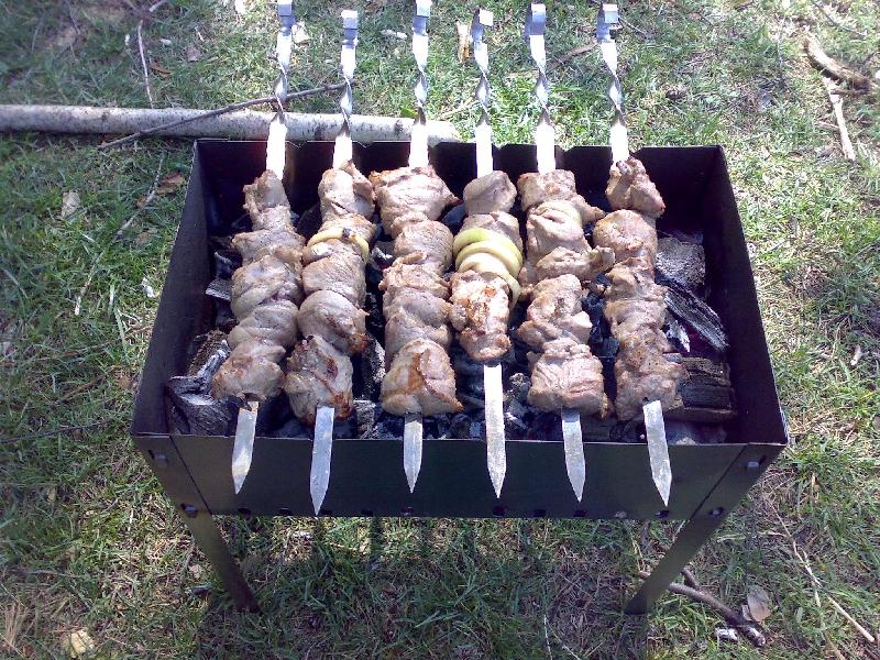 Заметь, не я его так назвал  В аттаче кошерная баранинка Купленная в выше упомянутом магазине, замаринованная при помощи лука, черного перца и соли. Приготовленная на берегу реки "Киржач". Из оставшегося мяска жена сегодня шикарный плов приготовила