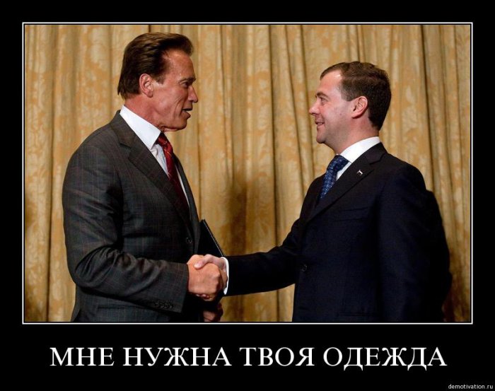 Седня Доренко на РСН прикололся. Шварцнеггер придет на встречу голый со словами: -Мне нужна твоя одежда и твой мотоцикл!