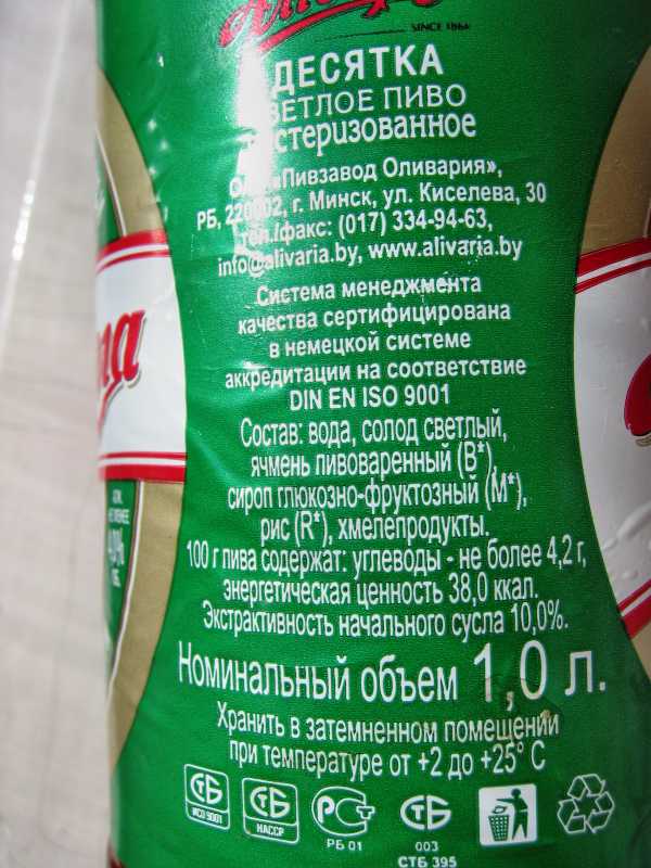 две интересные вещи: -применяемые ингредиенты указаны в коде сроке годности -пиво называется Алiварыя, на этикетке по-русски пишут Аливария, а пивзавод называется Оливария