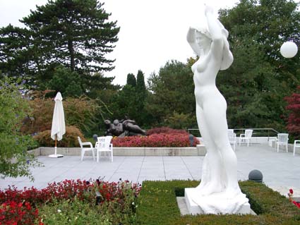 Постоял у памятника русскому писателю Набокову, написавшему знаменитую «Лолиту». Жил он в гостинице, напротив своего памятника. А после его смерти ему поставил памятник напротив гостиницы. Памятник очень выразителен и мне понравился.