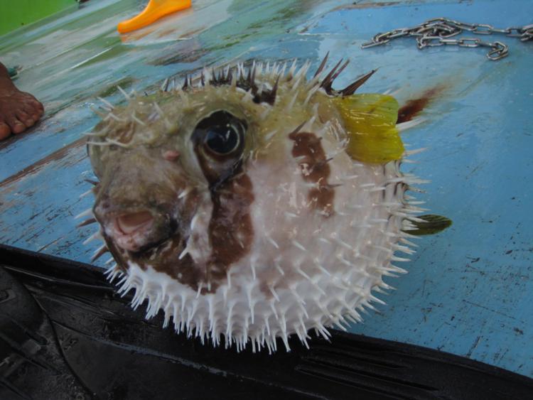 прикольную хрень вытащил из воды за хвост.......колючая дрянь