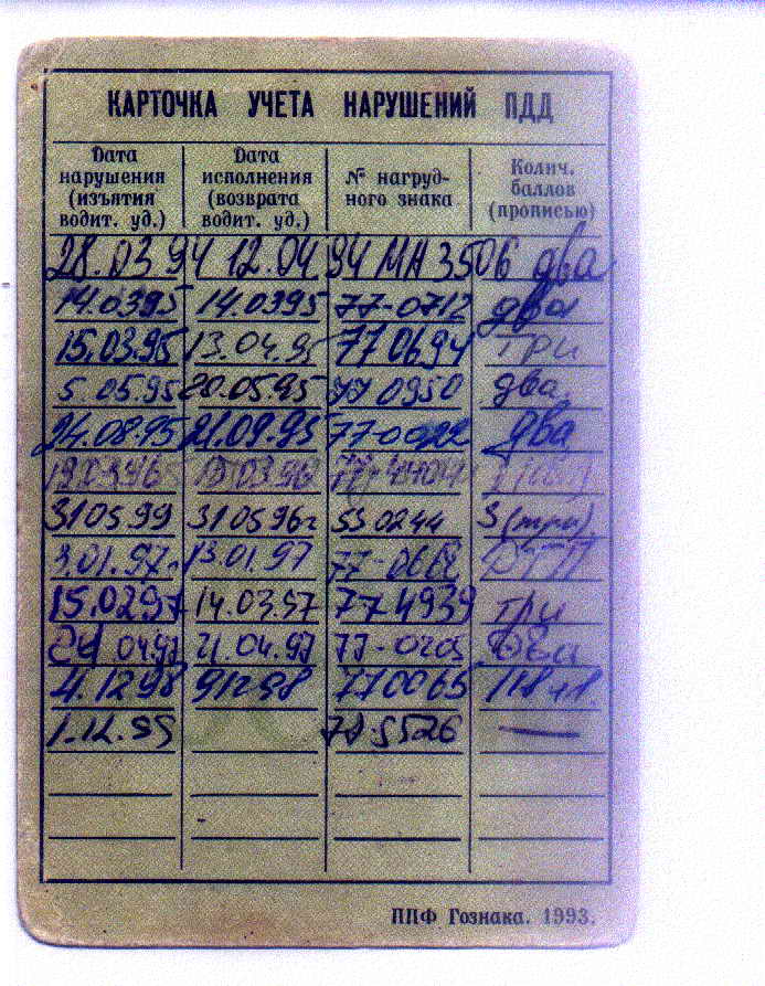Один только талон пердуперждений от них и остался (уже нового образца, с баллами). Как можно видеть, ездил я в те годы довольно лихо