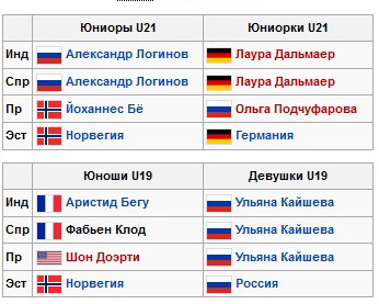 Что говорить - ужасно, крайне не хотелось бы сглазить. Но тут дело такое, вряд ли моё и наше общее скромное мнение может на что-то повлиять. Процесс, увы или к счастью, объективный. Пока что ясно одно - у нас появился и уже успел засверкать яркий талант, сравнимого с которым давно уже не было. Чтобы показать это, сравним с достижениями в сравнимом возрасте некоторых других спортсменок. Другое, что будет интересно из этих сравнений - а не пора ли выпускать Ульяну в высший свет - на этапы КМ. Отправной точкой для сравнений будет возраст - Ульяна 1994-го года рождения (8 марта!). 2012 (18 лет) - чемпионка юношеских Олимпийских игр. 2013 (почти 19) - абсолютная чемпионка ЮЧМ.