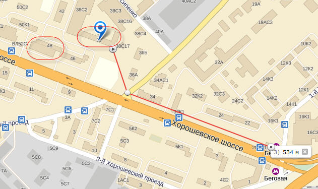 Улица: Хорошевское шоссе. Метро: Беговая.