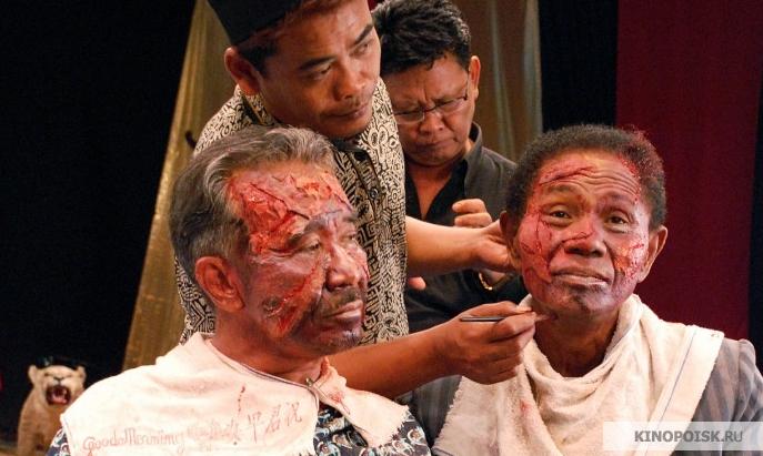 Фильм давно валялся на винте, посмотреть решил только сейчас, когда увидел один из восторженных отзывов. Всем любителям документальных лент про исторические убийства и насилие смело рекомендовать. В отличие от большинства рецензентов, считающих этот фильм "беспрецедентным документальным исследованием человеческой природы", я как-то больше углядел связь с программами вроде "Криминальной России". Наверное, потому что во время просмотра не пропускал все увиденное через себя... Если вдумываться в происходящее на экране, то действительно легко ужаснуться. Причем два раза. Первый раз - поняв какой беспредел творился в те годы. Второй - видя, что люди, творившие этот беспредел, не преданы ни суду, ни даже общественному порицанию. Наоборот, они гордятся этим. Очень легко ко всему относятся.