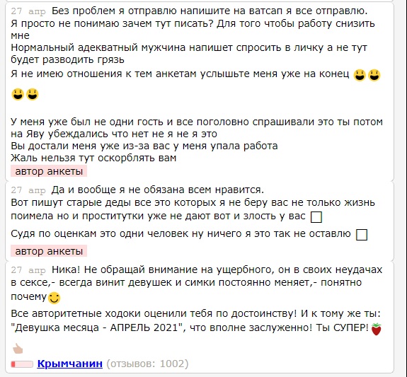 По поводу Крымчанина: 1. Отзывы под анкетой этой Ники закрылись, гавканья поубавилось