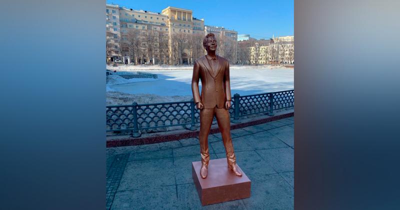 На Патриарших появилась «шоколадная» статуя актера Деревянко