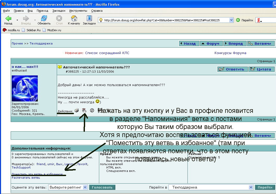 ... что названы они с точностью до наоборот - вроде бы напоминатель и должен (по идее) извещать о новых ответах в ветке А так плюс у него только один - сохраняется ссылка на конкретный пост, а не на ветку